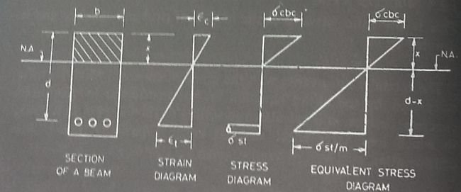 - All tensile stresses are taken up by steel reinforcement and none by concrete.